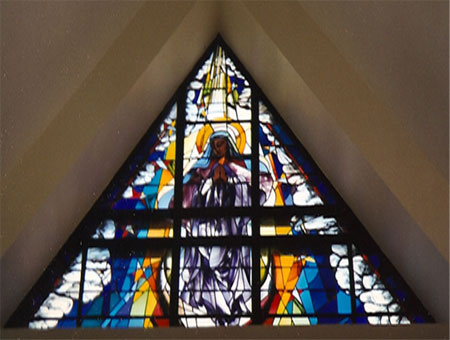 A few examples of stained glass designed & created for Catholic churches, universities and parochial schools.