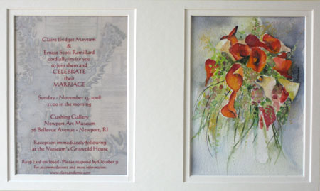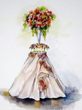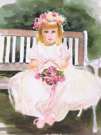 The Bride-To-Be has received more toasters, blenders, linens, dishes, and pickle savers then she'll ever use! So what gift can you give that will commemorate their wedding day and be a lasting treasure? Consider giving the gift of a wedding portrait of the bride in her wedding dress. Or, give a keepsake like none other - a watercolor rendering of the bride's floral bouquet super-imposed over the wedding invitation. Perhaps you want to capture a special moment during their wedding day; as they stand together saying their vows, or their first dance as "Mr. & Mrs."? Capture the event as an original work of art!